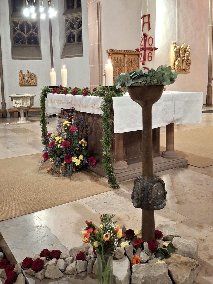 Diese Frage begleitete die drei österlichen Tage in diesem Jahr: Am Gründonnerstag richtete sich unser Blick auf „steinige“ Wege im Leben, am Karfreitag konnten Steine -als Zeichen für das Schwere im Leben– vorm Kreuz abgelegt werden, bis hin zur Osternacht und der österlichen Botschaft. Ostern zeigt: Leben verändert sich – neues Leben ist möglich. Auch dort, wo Lebenswege hart und steinig erscheinen, kann Neues wachsen.