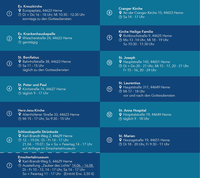 Drei der insgesamt 15 Lichtobjekte werden in Kirchen in unserer Pfarrei zu sehen sein: in St. Bonifatius, Herz Jesu und in St. Peter und Paul.
