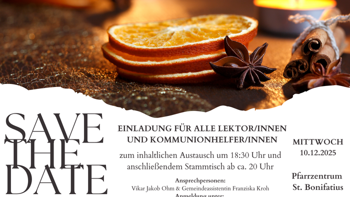 Herzliche Einladung zum Treffen für Lektor/innen und Kommunionhelfer/innen im Advent. Die Anmeldung ist sowohl für den inhaltlichen Austausch und den Stammtisch sowie auch nur für einen der beiden Programmpunkte möglich.