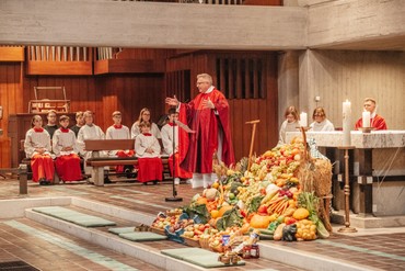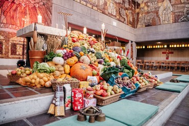 Anlässlich des Erntedankfestes an diesem Wochenende wurde zudem Lebensmittelspenden gesammelt, die vorm Altar in der Kirche einen wunderbaren Blick boten! Alle Spenden wurden anschließend an die Herner Tafel weitergegeben.