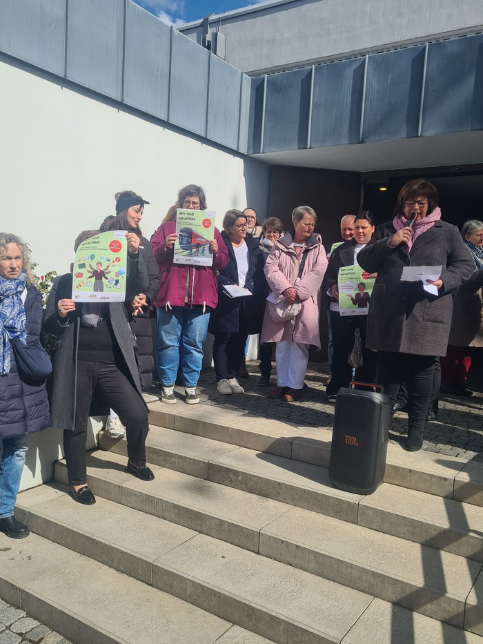 Es war kein ganz normaler Palmsonntag für die Pfarrei St. Dionysius. Nach dem Gottesdienst wurde vor dem Portal der Bonifatius-Kirche von Kindern, Eltern, Kita-Beschäftigten und Gemeindemitgliedern mit Plakaten und „Flash-Mob“ gegen den aktuellen „Kibiz-Gesetzentwurf“ des Landes protestiert. Das Motto der Aktion katholischer Kitas lautet „Wir sind sprachlos – Landesregierung betreibt mit Kibiz-Entwurf Realitätsverweigerung“.