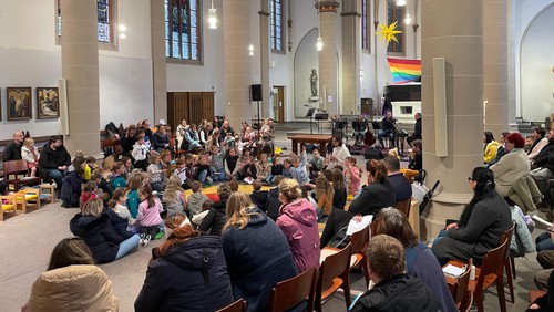 Zum Abschluss der Herbstferien füllte sich die Kinderkirche mit rund 60 Kindern und ihren Familien. Während des Gottesdienstes entdeckten die Kinder neugierig wie die Bibel geschrieben wurde und was die Bibel für uns Menschen heute noch so besonders wertvoll macht. Highlight war eine Ausstellung von verschiedenen Kinderbibeln im Anschluss des Gottesdienstes in Kooperation mit der Katholischen Bücherei St. Marien.