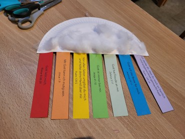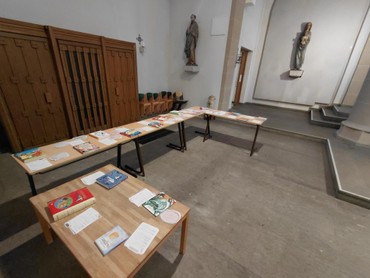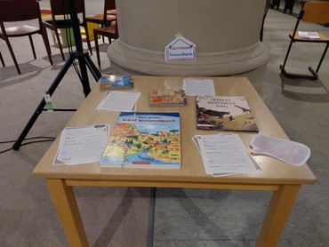 Die Kinder konnten mit ihren Eltern durch die Ausstellung stöbern, lesen und gemeinsam überlegen, welche Bibel am besten zu ihnen als Familie passt. Die Auswahl war groß und so konnte aus Wimmelbilderbibeln, Bilderbibeln und Erzählbibeln zum Vor- und Selberlesen ausgewählt werden. Alle ausgestellten Bibeln erzählen biblische Geschichten aus dem Alten und Neuen Testament nach und stellen diese Erzählungen durch ihre unterschiedlichen Texte und Bilder für verschiedene Zielgruppen dar. Die Kinder konnten nach dem Gottesdienst ebenfalls in der Jurte Geschichten aus der Bibel lauschen, Lesezeichen und Gute-Worte-Wolken mit Bibelzitaten basteln und bei einem Bibelquiz spielerisch die biblischen Geschichten kennenlernen. Das Elterncafé war für Austausch, Feedback und Ideensammlung geöffnet. Dabei kamen einige Ideen zusammen, welche biblischen Geschichten und Legenden über Heilige unbedingt in der Kinderkirche erzählt werden sollen. Den gemeinsamen Abschluss bildete ein Segen für die kommende Zeit und den Neustart nach den Herbstferien für die Schulkinder.