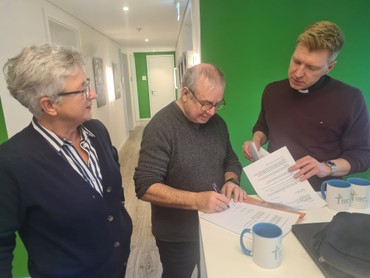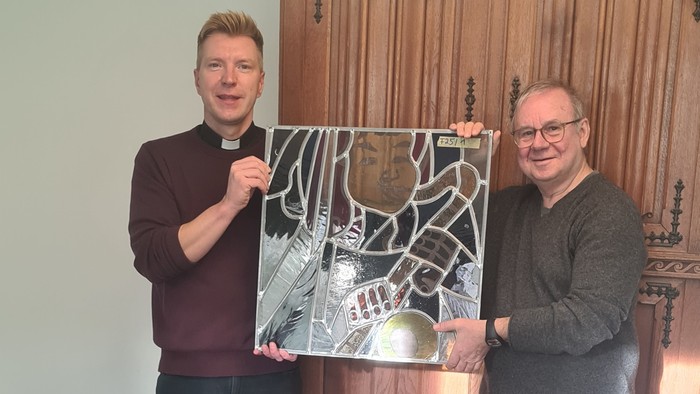 Und das Kirchenfenster mit dem betreffenden Wunschmotiv wird nun in seiner Kölner Wohnung neugerahmt einen Ehrenplatz erhalten. Zwar bleibt das Werk im Besitz des Erzbistums Paderborn, doch mit Kròls Unterschrift unter einem Leihvertrag, den ihm Dr. Nils Petrat und Gundula Kappen vom Kirchenvorstand vorbereitet hatten, darf das Kirchenfenster jetzt nach Köln umziehen.