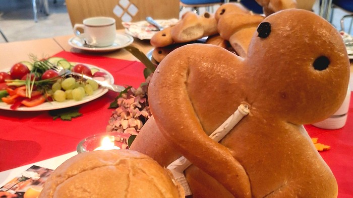 Diese Premiere war ein voller Erfolg und so wurde schon ein zweiter Termin für den 30. November (9:30 Uhr) festgelegt. Die Rede ist vom neuen DIO-Sonntagsfrühstück. Auch wenn für nicht wenige Zeitgenossen die Uhrzeit 9:30 Uhr am Sonntag eher noch in der Schlummerzeitphase liegt, haben es sich bei der ersten Sonntagsmorgenrunde vor dem Gottesdienst 25 „Frühaufsteher“ nicht nehmen lassen zu schlemmen. Bei u.a. Brötchen, selbstgemachter Marmelade und passend zur Jahreszeit frischen Stutenkerlen hat man es sich unter der Bonifatius-Kirche schmecken lassen. Doch es gab auch geistige Nahrung. Pfarrer Dr. Nils Petrat und Gemeindereferentin Bettina Aust servierten einen Impulsvortrag mit Informationen aus der Geschichte sowie zur Legende des heiligen Martin. Und da der zweite Termin für das DIO-Sonntagsfrühstück am 30.11. auf dem 1. Advent liegt, steht freilich auch das Thema „Advent“ fest.