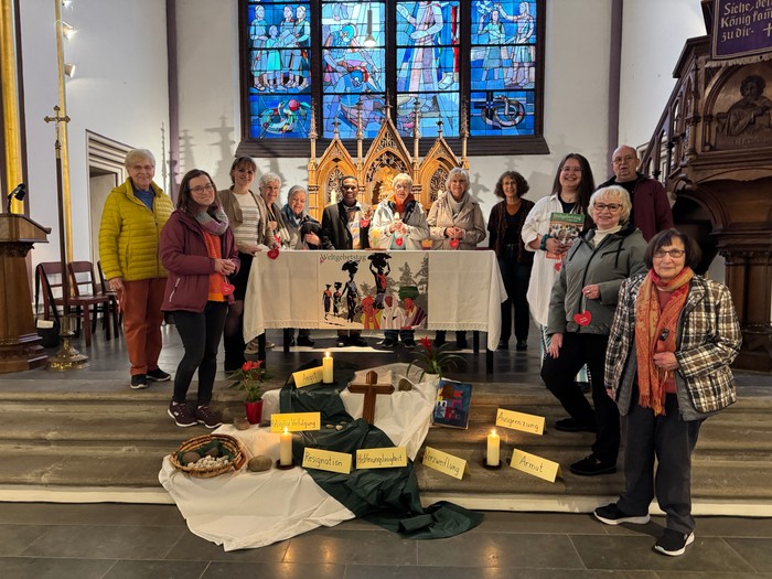 Am ersten Freitag im März findet bekanntlich jedes Jahr der Weltgebetstag ökumenisch wechselweise in evangelischen und katholischen Kirchen statt. Er wird jeweils von Frauen aus einem bestimmten Land vorbereitet, dieses Mal Nigeria. In der ev. Matthäusgemeinde gab es vor dem Gottesdienst in gemütlicher Runde bei Kaffee und Kuchen viele interessante Informationen über das Land, die Lage und Größe, die Menschen, Kulturen und Religionen, die Politik und Wirtschaft und insbesondere die überwiegend benachteiligte Situation der Frauen. Dazu trugen mehrere Gäste, die aus Nigeria stammen, und ein Prediger einer christlichen Gemeinde aus Ghana ganz persönlich bei. Das Thema im anschließenden besonderen Gottesdienst war „Kommt! Bringt eure Last.“, das durch ein Team zusammen mit St. Marien und besonders durch eine Musikgruppe sehr ansprechend umgesetzt wurde.