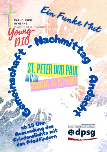 Im Oktober war der Auftakt. In der Kirche St. Peter und Paul trifft man sich, um in Gemeinschaft den Nachmittag zu verbringen und auch Andacht zu feiern. Jugendliche zwischen 10 und 15 Jahren sind eingeladen. „Young-DIO“ trifft sich ab 17 Uhr am Sonntag, 14. Dezember in der Kirche St. Peter und Paul (Ecke Kirchstraße/Widumer Straße), um 18 Uhr mit Aussendung des Friedenslichts mit den Pfadfindern. Das Motto in diesem Jahr lautet: Ein Funke Mut.